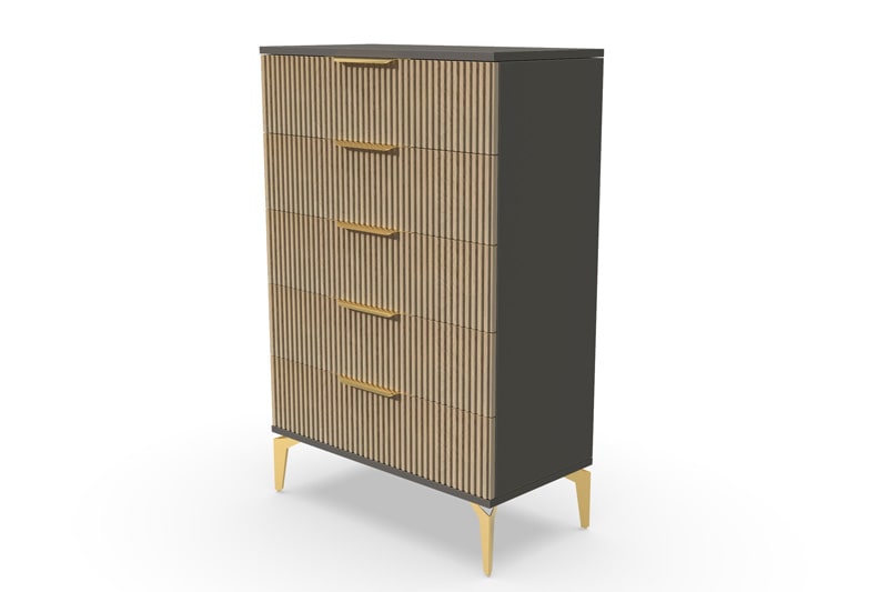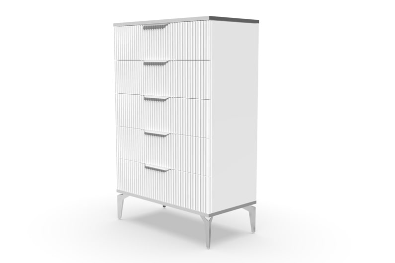 В итоге, комод высокий "Рейн" от фабрики Geona - это функциональное и элегантное решение для вашей спальни или гостиной. Он имеет несколько выдвижных ящиков разного размера, а его рифлёные поверхности придают ему современный и стильный вид. Комод выполнен из качественных материалов и производится с применением передовых технологий, что гарантирует его долговечность и надежность.