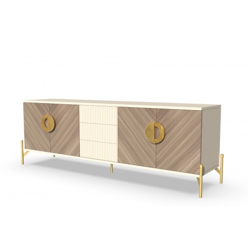 Отделка в диагональном направлении текстуры придает ТВ-тумбе неповторимый стиль и элегантность. Эта отделка создает гармоничное сочетание с различными интерьерами, добавляя им индивидуальности и уникальности.