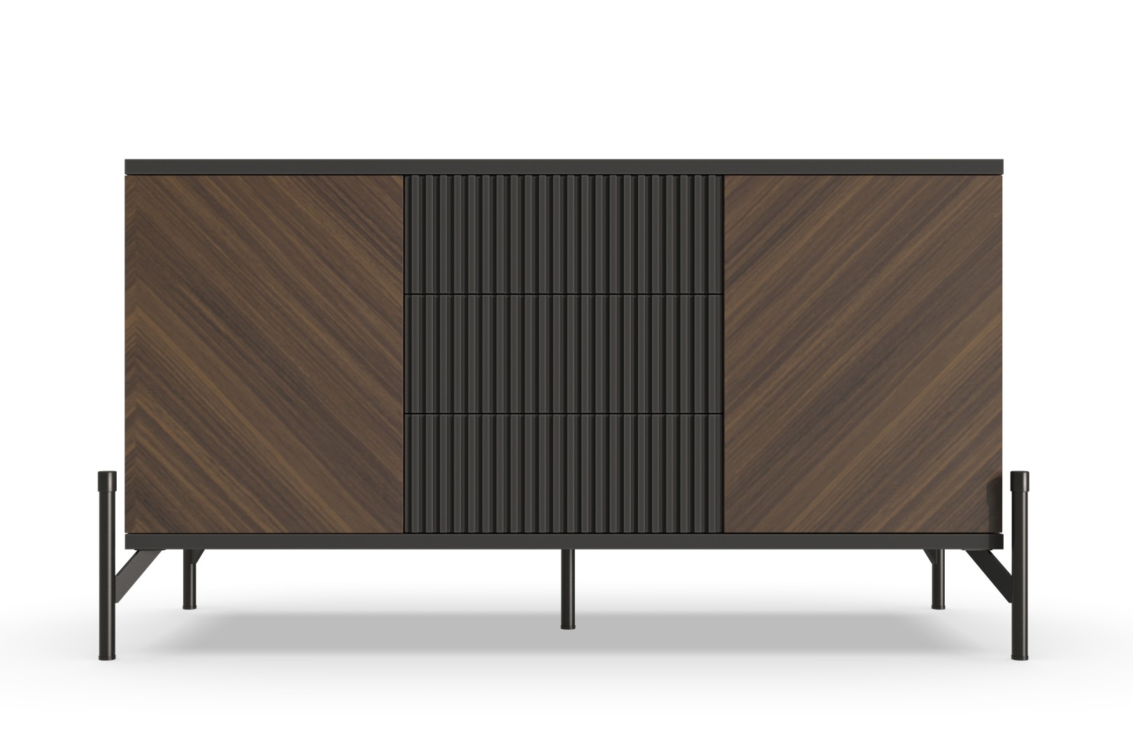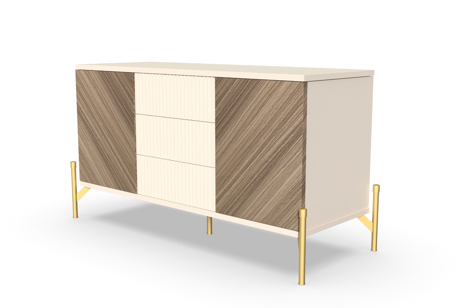 Отделка этой тумбы под ТВ в диагональном направлении текстуры создает ощущение глубины и динамики. Эта техника декорирования мебели делает ее уникальной и позволяет гармонично вписаться в разные стили интерьера.