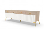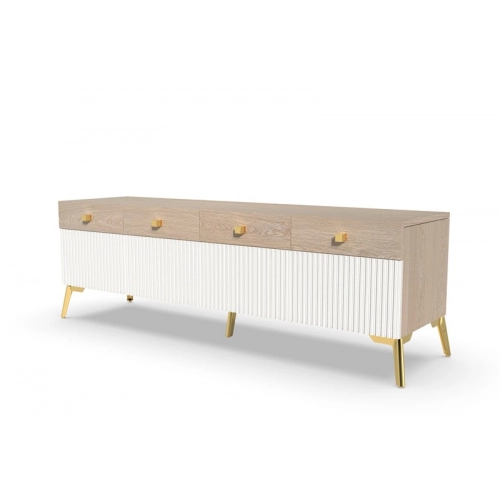 Тумба под ТВ Темпо от фабрики Geona - это красивое и практичное решение для тех, кто ценит качество и удобство. Она выполнена с использованием рифлёных поверхностей в двух цветах - Дуб Галифакс натур. 8177 и Софт блэк.