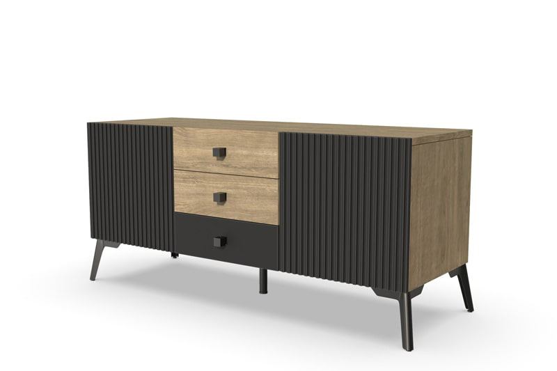 Тумба под телевизор Темпо от фабрики Geona - это изящное и функциональное решение для любого гостиничного номера или гостиной комнаты. Она сделана с рифлёными поверхностями, что придаёт ей текстурированный эффект и уникальный дизайн.