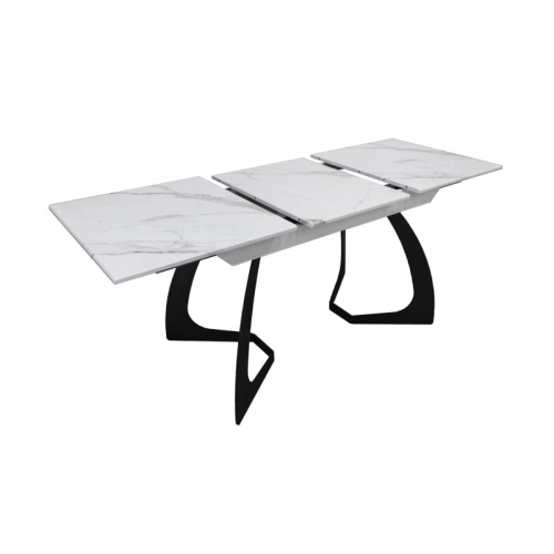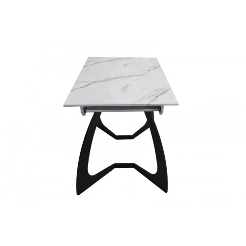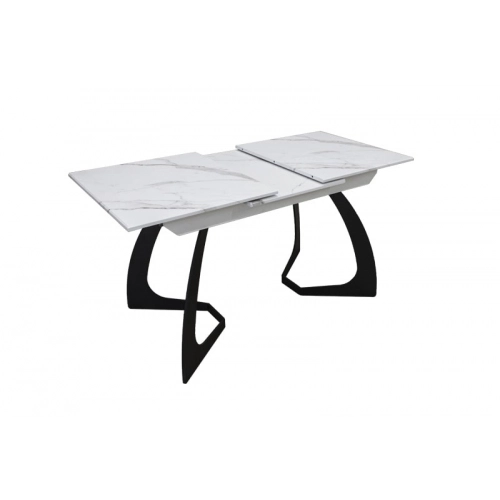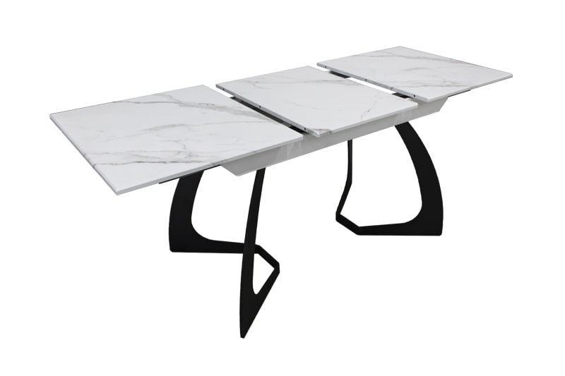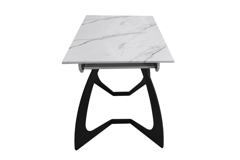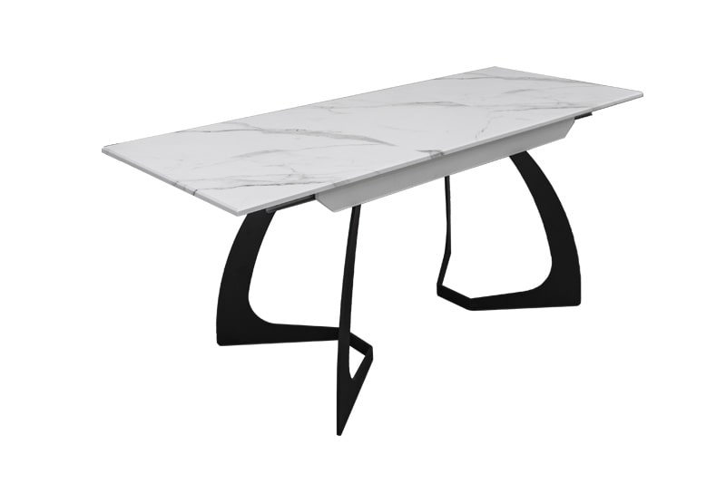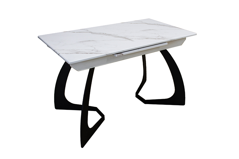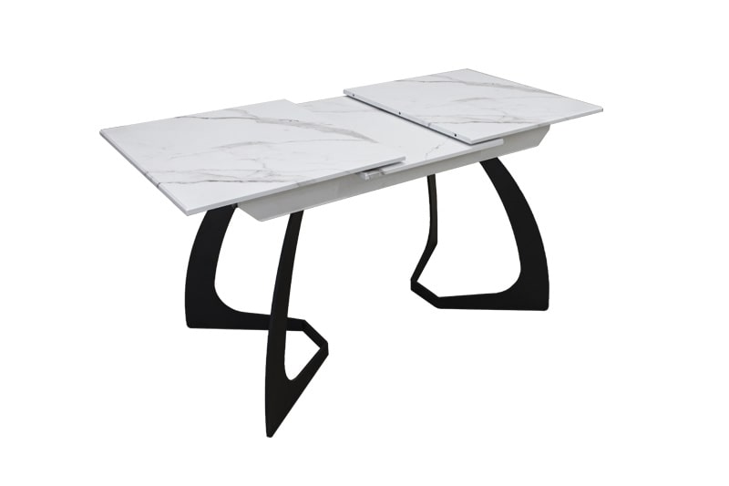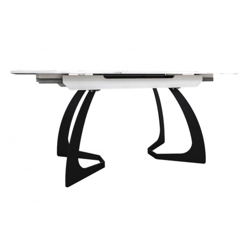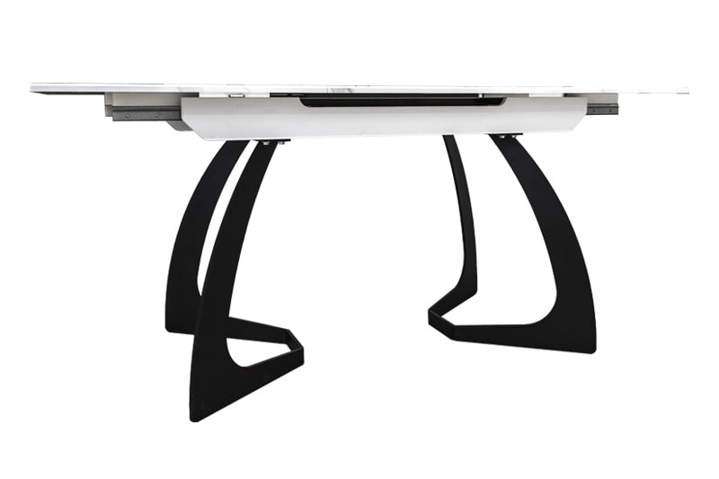 Ножки оригинальной формы глубокого черного цвета – не останутся без внимания. Опоры из нержавеющей стали устойчивые и при этом визуально легкие. Стол снабжен механизмом синхронного раздвижения с фиксатором, с автоматическим подъемом вставки стола, позволяющей легко увеличить длину на 50 см.