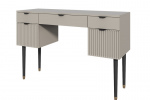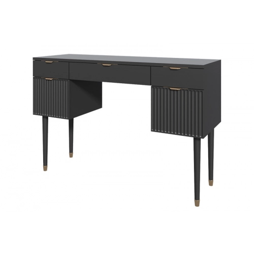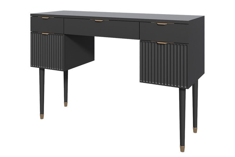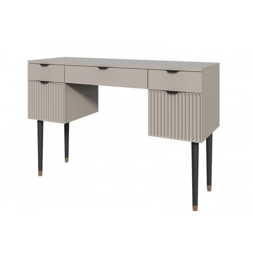 Туалетный столик «Нео» выполнен в современном минималистичном стиле с акцентом на функциональность и чистоту линий. Декоративные фасады с вертикальной фрезеровкой и аккуратные металлические элементы формируют сдержанный, но выразительный внешний вид.